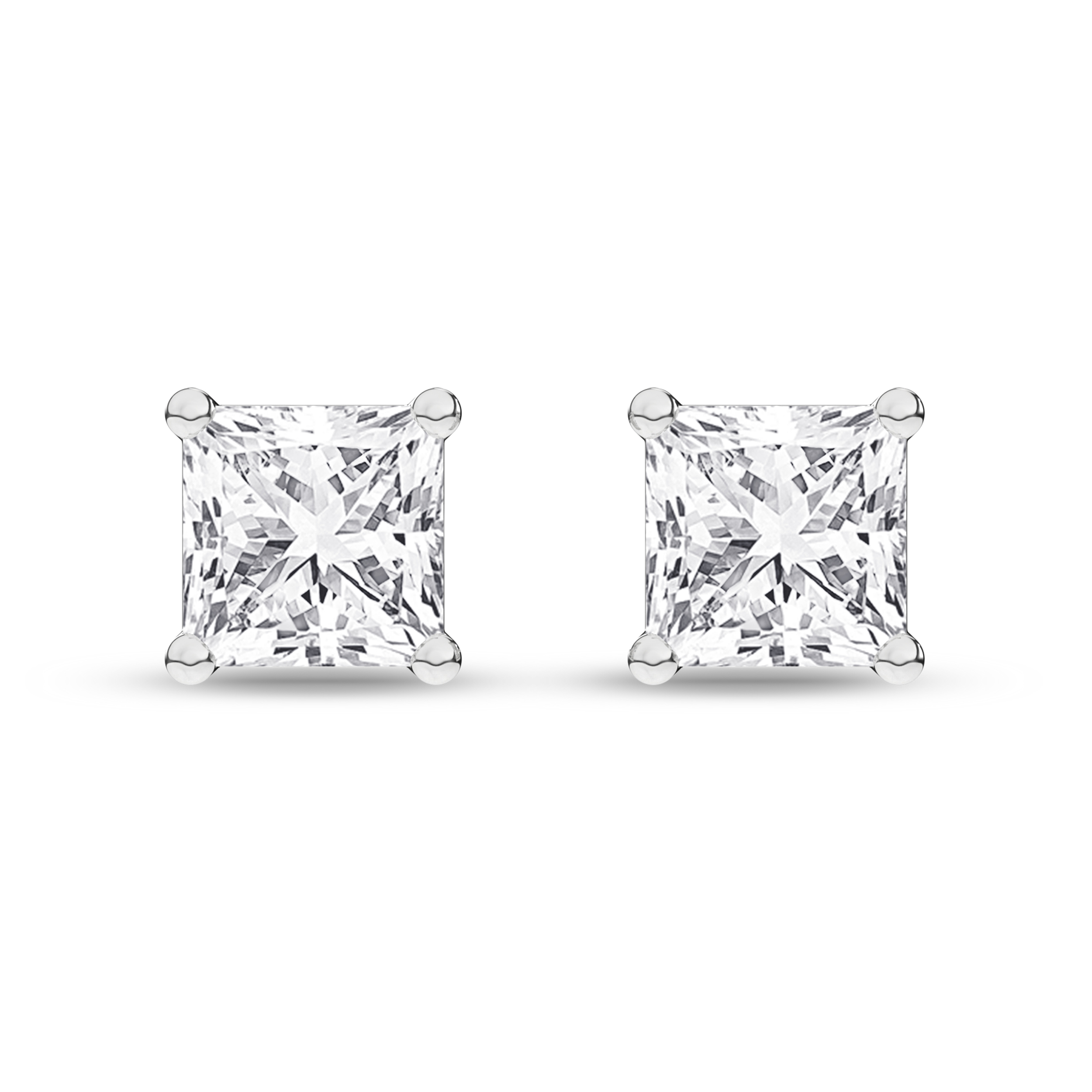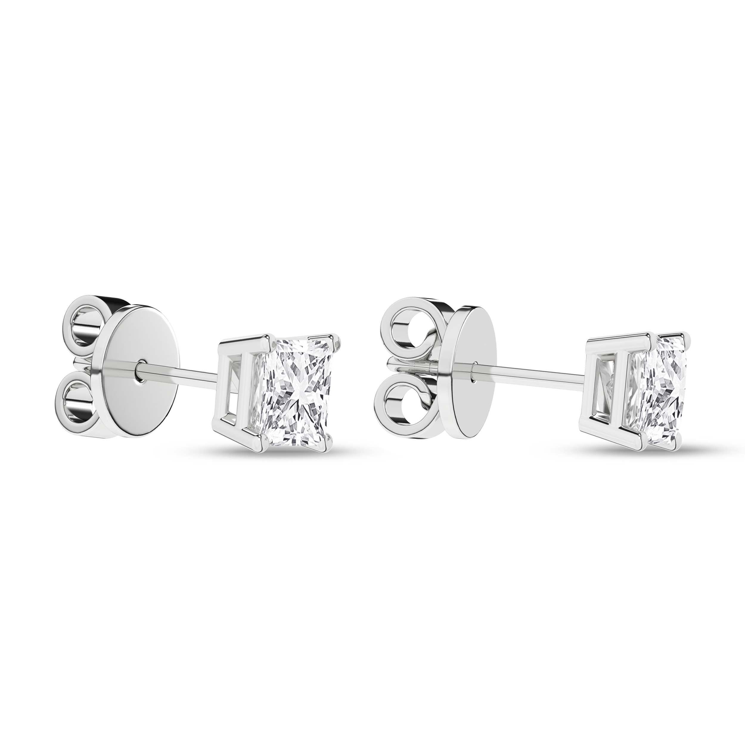 Timeless princess Lab Grown diamond solitaire stud earrings, IGI-certified for their exceptional quality, are set in 14KT white gold and radiate with 1 ctw of diamonds. Each earring showcases a brilliant Revelation 1/2 ct. princess diamond solitaire, known for its captivating sparkle and fire, presented in a classic four-prong setting. These post earrings are secured confidently and comfortably with pushbacks. The diamonds' impressive EF color and VS clarity, affirmed by the IGI certification, ensure a remarkable and enduring adornment that effortlessly combines sophistication with beauty.