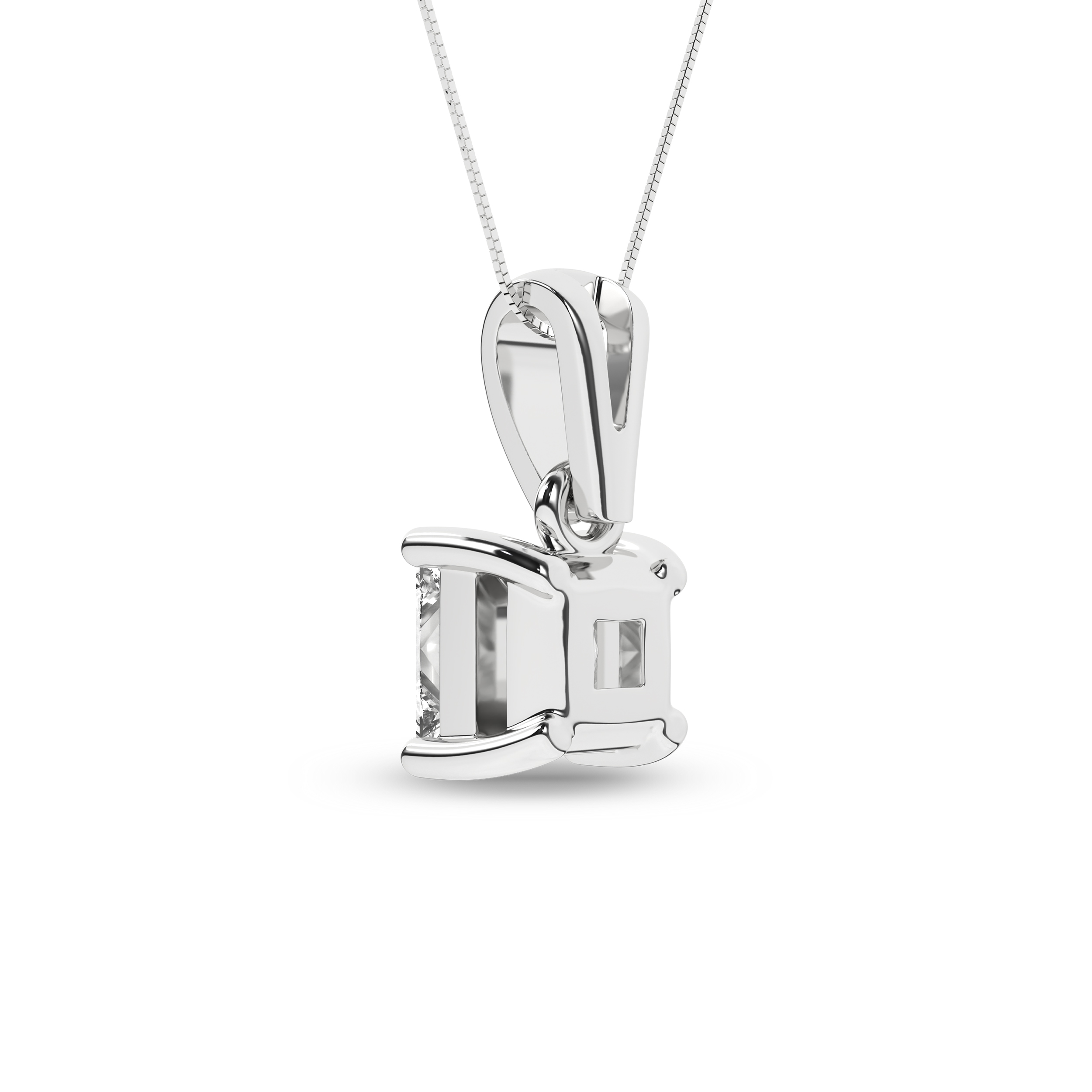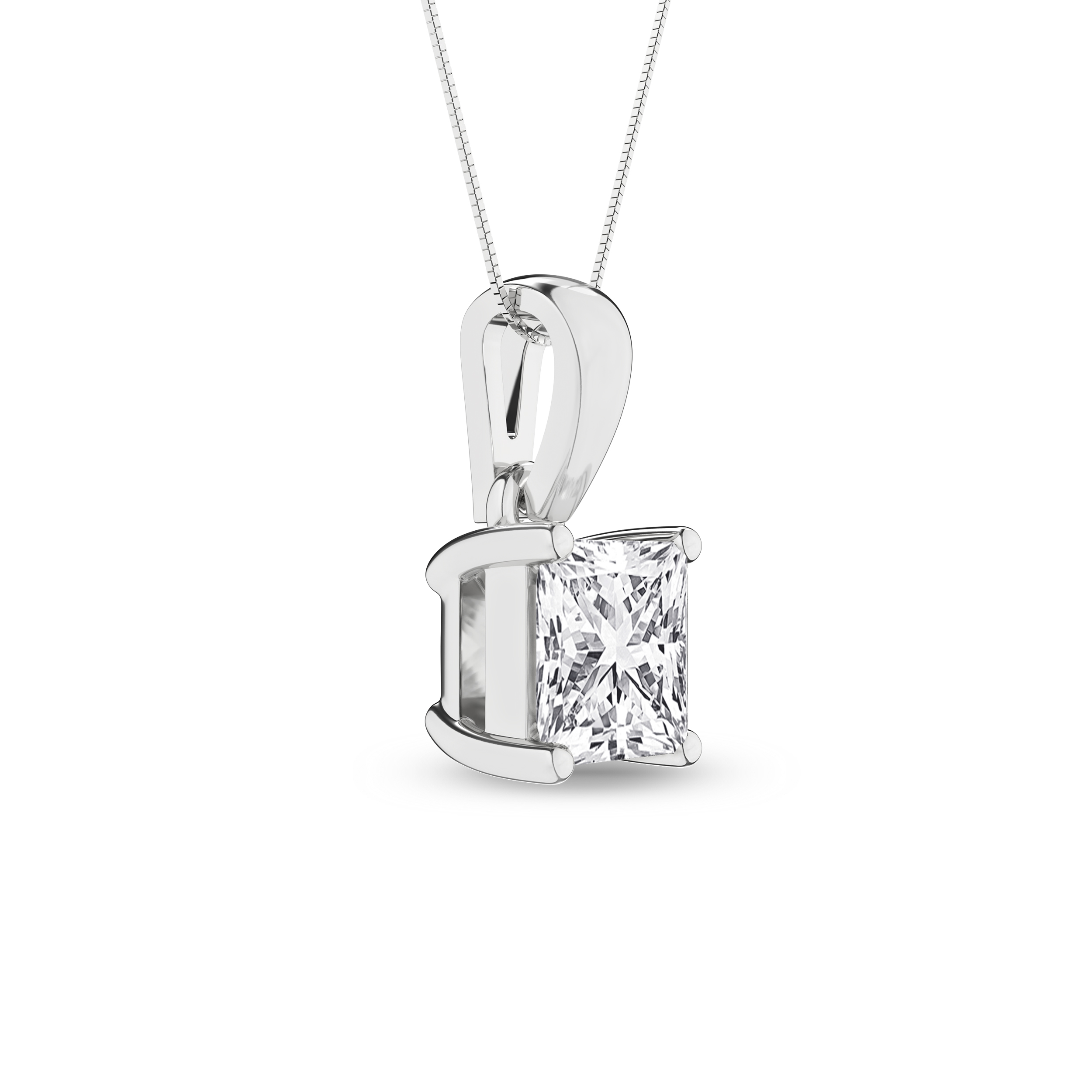 Introducing our classic princess Lab Grown diamond solitaire pendant - a true emblem of elegance. This pendant, meticulously IGI-certified to authenticate its quality, is set in 14KT white gold and adorned with 1 1/2 ct princess cut diamond solitaire, which shimmer brilliantly within a vibrant four-prong setting. The pendant includes a box chain that is securely fastened with a spring ring lock. Notably, the diamonds possess a remarkable F color and VS clarity, attributes verified by the IGI certification process.