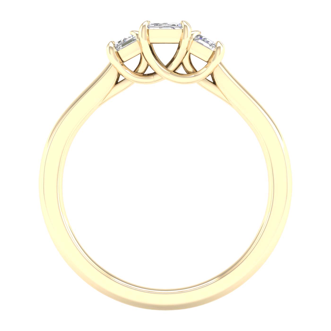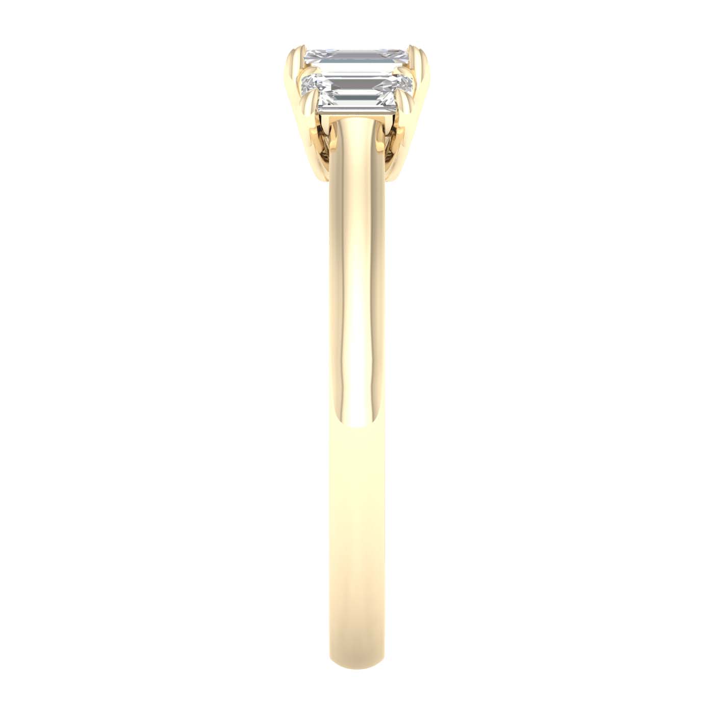 Discover the timeless elegance of our Emerald Lab Grown Diamond Ring, a masterpiece featuring three magnificent emerald-cut diamonds seamlessly set in a row, creating a harmonious display of radiant beauty in 14KT yellow gold. This exquisite ring is studded with 1 ctw of diamonds, each one certified by IGI for authenticity and quality assurance. The center emerald-cut stone is a dazzling 1/2 ct, while the sides boast equally stunning 1/4 ct diamonds. With EF color diamonds and VS clarity, this ring sparkles with unmatched brilliance, making it a remarkable symbol of your enduring love and commitment.