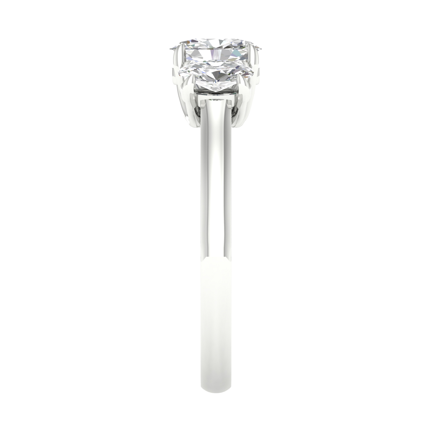 Experience the allure of our alluring oval Lab Grown Diamond Ring, a true masterpiece featuring three brilliant oval-cut diamonds seamlessly set in a row, creating a harmonious display of radiant beauty in 14KT white gold. This exquisite ring is studded with 1 ctw of diamonds, each one certified by IGI for authenticity and quality assurance. The center oval-cut stone is a dazzling 1/2 ct, while the sides boast equally stunning 1/4 ct diamonds. With EF color diamonds and VS clarity, this ring sparkles with unmatched brilliance, making it a remarkable symbol of your enduring love and commitment.