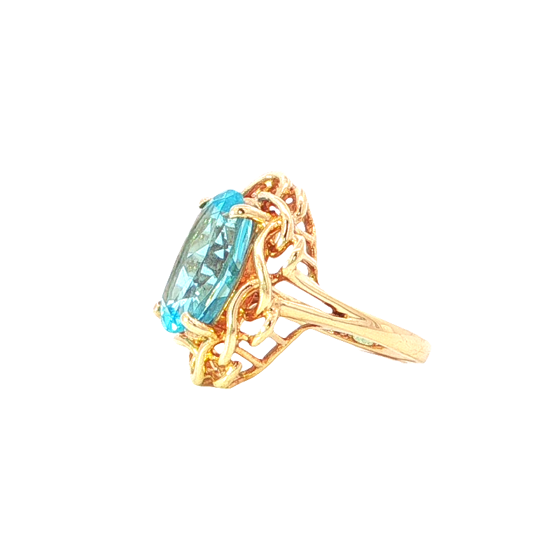 Yellow Gold Cocktail Ring with Bluish Green Aquamarine